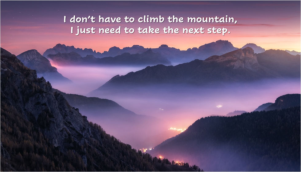 So, the next time you're faced with a daunting challenge, remember you don't have to conquer the entire mountain in a day. Just focus on that next step. Embrace the journey, relish the small victories, and know that with each stride, you're making progress. Because in the end, it's not just about reaching the top; it's about the lessons learned, the growth experienced, and the person you become along the way.